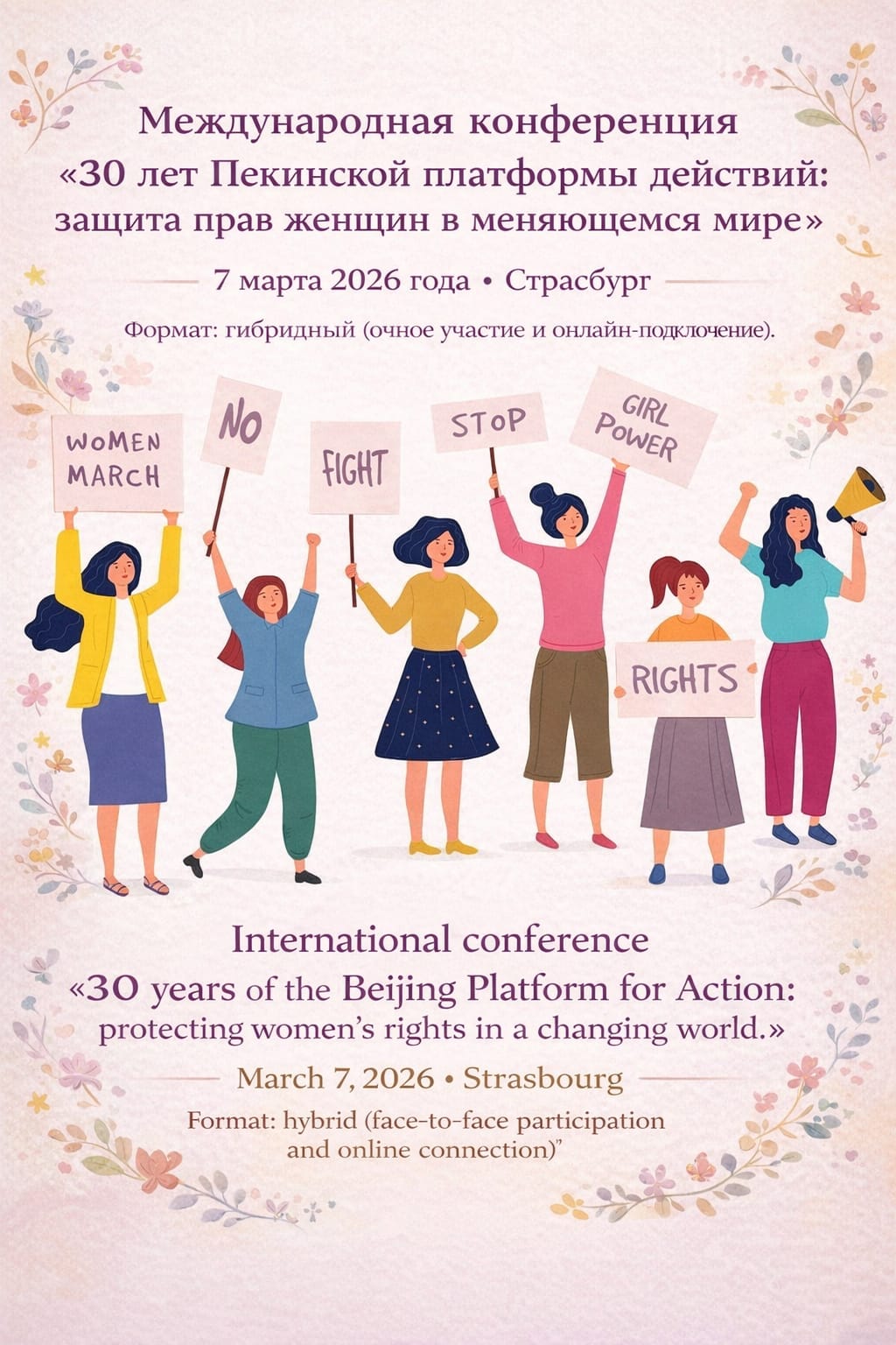 С 6 марта по 10 марта 2026 года в г. Страсбург (Франция) проходила Международная конференция Всемирного Альянса Русскоговорящих женщин «30 лет Пекинской платформы действий: защита прав женщин в меняющемся мире» (гибридный формат проведения).