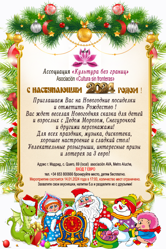 Мы все любим новогодние праздники! Приглашаем вас и всех ребят в мир праздников! Здесь вы можете посмотреть все Новогодние афиши к мероприятиям, которые предлагают ассоциации СОРС по разным городам Испании.