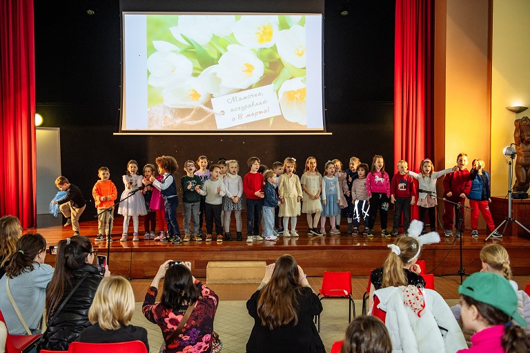 Очень порадовали родителей конкурсы, проведенные вместе с мамами. В заключении концерта все дети школы очень трогательно исполнили песню «Мама – первое слово»..., а после песни каждый ребенок подарил  маме сердечко - открытку со своими написанными поздравлениями.Ученики школы Радуга порадовали своих мам разнообразными выступлениями – и танцами, и песнями, особенно трогательной по словам зрителей была театрально-музыкальная постановка учеников 1 и 2 классов «Солнечные зайчики».По традиции в ведении концерта принимали участие старшеклассники. Всем своим мамам дети подарили небольшие подарки.