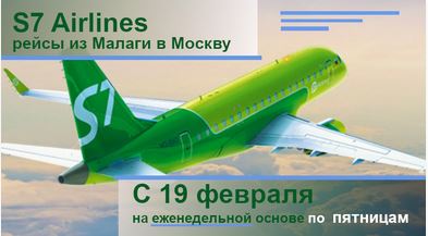 S7 Airlines с 19 февраля начинает выполнять рейсы из Малаги в Москву (аэропорт Домодедово) на еженедельной основе по пятницам.