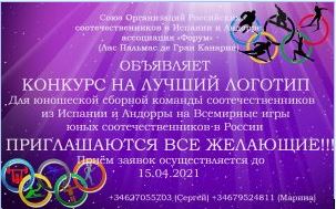 Союз Организаций Российских Соотечественников Испании и Андорры (СОРС) объявляет конкурс на лучший логотип для экипировки юношеской сборной Испании и Андорры для участия во Всемирных Играх юных соотечественников, которые ежегодно проходят в России.