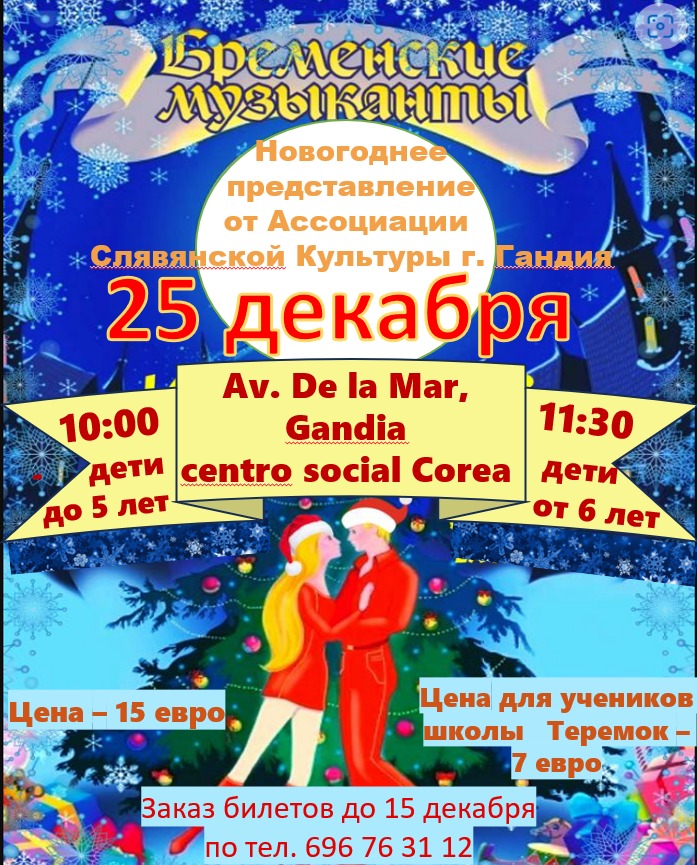 Дед Мороз и Снегурочка очень спешили поздравить детей из разных уголков Испании. В каждой школе выходного дня, в творческих коллективах при ассоциациях соотечественников, проживающих в Испании, были организованы Новогодние представления, спектакли, шоу, утренники.