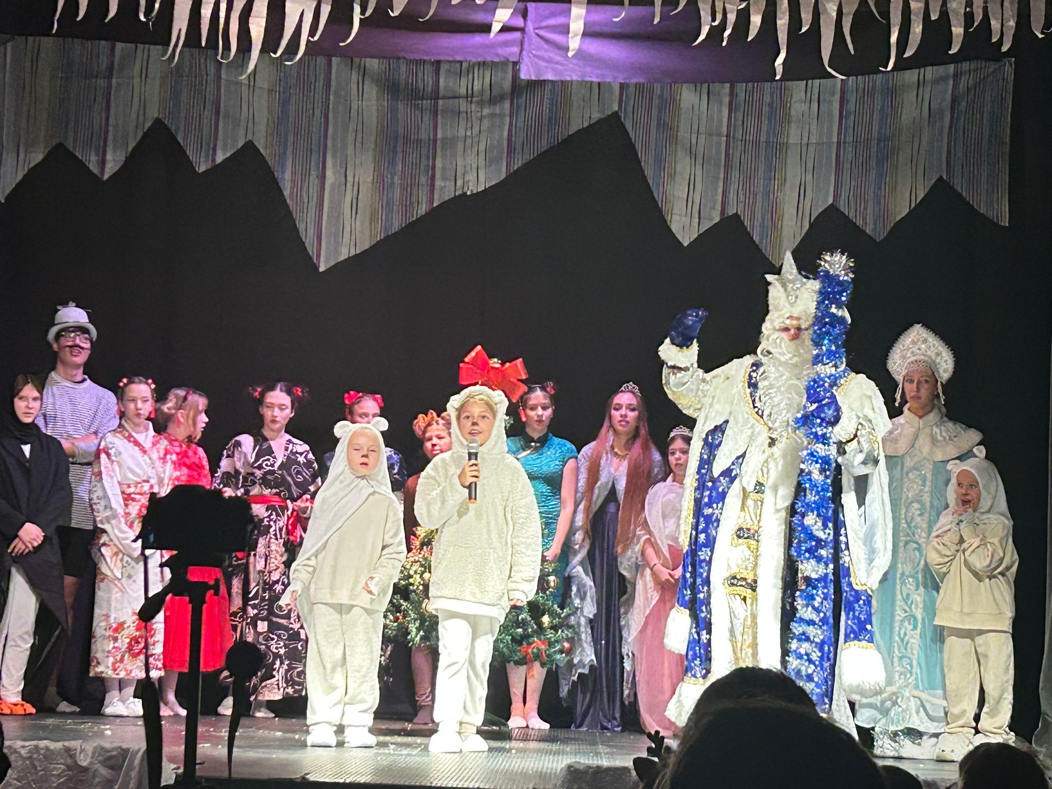 Настоящим сюрпризом для гостей стало появление Деда Мороза и Снегурочки, которые поздравили всех с наступающими праздниками. В завершение спектакля дети получили сладкие подарки, а зал наполнился радостной и по-настоящему новогодней атмосферой.