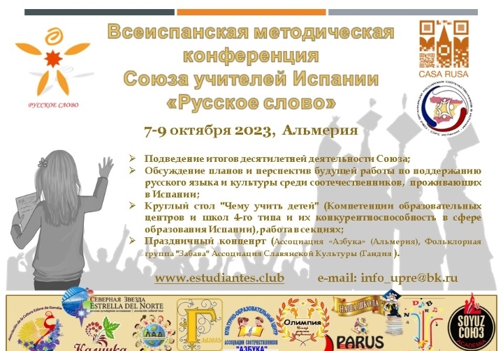 7-9 октября этого года состоялась Всеиспанская конференция Союза учителей Испании "Русское слово", посвященная 10-летию его деятельности. Конференция проходила при поддержке представительства Россотрудничества в Испании в г.Альмерия, Викар, Рокетас де Мар.